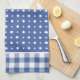 Ein sehr stilvolles Küchentuch oder Teetuch in monaco-blau mit weißen Polka-Punkten und Karo-Gingham.