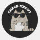 Karo Meowt Funny Cool Cat Pun Dark BG Runder Aufkleber