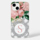 Diamonds Monogram Pink Roses Funkelnd Bling Tufted Case-Mate iPhone 14 Fall. Sehr luxuriöses Design mit rosa Rosen auf gepflegtem Hintergrund. Das Design beinhaltet ein individualisierbares Monogramm und einen Namen, umgeben von schönen funkelnd Diamanten. Ideal, um sich anzuhören!