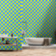 Mein Originalwerk ist auf diesem spaßigen Wallpaper zu sehen, bestehend aus einem Schachbrettmuster in Kalkgrün und Türkis, das das Grundmuster dominiert. Die Größe dieses Raumes beträgt 1,50 x 2,50 m, aber Sie können auch andere Größen wählen. Diese Schale und Stock Tapete ist in texturiertem Vinyl oder Sie können auch wählen, glatt Vinyl.