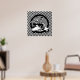 Schwarz-Weiß-Kunst, 50er sehen Retro-Roller-Paar auf 50er-Stil Roller mit einem Karo Hintergrund. Großes Geschenk für jeden Liebhaber der 50er / 60er Roller-Kultur