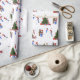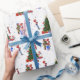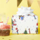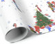 Carolers and Christmas Trees Wrapping Paper entworfen wurde mit einem Muster festlicher Caroler, die einen Weihnachtsbaum umgeben und vor einem weißen Hintergrund mit grünen und roten Fesseln abgebildet sind. Sehr festlich und lustig!