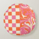 Karos und Wirbel - Rosa, Orange und Creme Rundes Kissen
