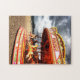 Das Golden Gallopers Karussell am Brighton Beach, Sussex, England, mit Blick auf die Überreste des verbrannten West Pier.
