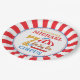 Komm eins, komm alle! Vervollständigen Sie Ihre Dekoration auf der besten Geburtstagsparty unter dem großen Dach mit unseren Tellern aus dem Zirkus-Karneval-Party Vorlagen. Die Teller dieses Zirkus-Karneval-Ticket-Geburtstagsfeier mit rotem und blauem Karussell und einem großen roten Zelthintergrund auf einem Party-Teller-Design.