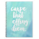 Hol es! Erleben Sie den Tag mit diesem Notizbuch in einem Pinselstrich-Schriftart vor einem Aquarellspülhintergrund.