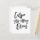 Unsere lustige und moderne Anführungspostkarte bietet "carpe that effing diem" in schwarz handgeschriebener Pinseltypografie auf weißem Hintergrund.