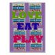 Schöne phantastische Retro Vintage Worte der Inspiration und Worte der Liebe. Niedliche phantastische Kunst mit schönen Text Hakuna Matata Liebe Essen und spielen als die niedlichen nahtlosen Quadrate mit den phantastischen Worten der Ermutigung, was keine Sorgen, keine Mühe oder nur kein Problem, als das häufigste gesprochene Swahili-Wort in der Welt und das gesprochene Wort in der afrikanischen Safari-Welt.