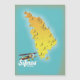 Samos Griechische Inselkarte mit einem schönen Vintagen roten Flugzeug im alten Stil.