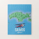 Samos Griechische Inselkarte mit einem schönen Vintagen roten Flugzeug im alten Stil.