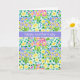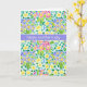 Eine hübsche Gruß-Karte der Mutter Tages, mit einem Muster von tiefrosa, tief blaue und gelbe Primeln, von einem handgemalten Entwurf durch Judy Adamson.