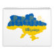 Karte der Ukraine mit Sonnenblumen und handschriftlich stilisierte Typografie in ukrainischen Flaggen Farben gelb und blau dekoriert
