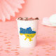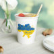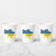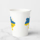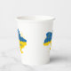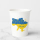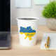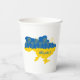 Karte der Ukraine mit Sonnenblumen und ukrainische Pappbecher