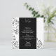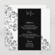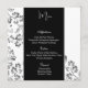 Diese Menükartenvorlage wird auf dem Grundpapier mit Blumenmuster, Schrift und Standardtext in Weiß angezeigt. Farben Schwarz, Grau, Weiß Passen Sie die Menüelemente an Ihre, indem Sie auf Anpassen Button, suchen Sie nach rechts und finden Sie geeignete Felder, um Ihre Informationen zu ändern. Wir wünschen Ihnen viel Spaß beim Hochzeitsfest. Bild