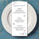 Feiern Sie die Jahreszeit der Liebe mit dieser wunderschön gestalteten Speisekarte, die mit zarten Sommerschmetterlingen geschmückt ist. Es ist in sanften Pastelltönen gestaltet und erinnert an den Charme eines sonnigen Gartensitzes oder eines romantischen Outdoor-Party. Ideal für Hochzeiten im Frühjahr und im Sommer, für Empfänge im Garten oder für Schmetterlingsfeste.