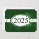 Blumendesigns, die den Knopf auf einem weißen Band umgeben, das Blumenmuster hat. Grüner bewölkter Hintergrund. Die Rückseite der Karte hat einen grünen Hintergrund mit weißer Schrift für die Graduierungsankündigungen.