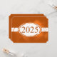 Blumendesigns, die den Knopf auf einem weißen Band umgeben, das Blumenmuster hat. Orangefarbener Hintergrund. Die Rückseite der Karte hat einen orangefarbenen Hintergrund mit weißer Schrift für die Graduierungsankündigungen.
