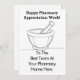 Mit dieser eleganten und personalisierten Grußkarte können Sie sich für die harte Arbeit Ihrer Lieblings-Apotheke bedanken. Mit einer zeitlosen Schwarz-Weiß-Mörtel- und Pestle-Grafik bietet diese Karte eine raffinierte Art, sich zu bedanken. Das Interieur ist leer und bietet viel Platz, um Ihrem engagierten Team eine herzliche Botschaft zu senden. Der Name Ihrer Apotheke lässt sich leicht an die Vorderseite für eine wirklich einzigartige und durchdachte Hommage setzen.