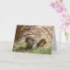 Junge Eichhörnchen sitzen an einem sonnigen Tag im Schatten von Zierrasen. Innentext: "Nehmen Sie sich Zeit aus Ihrem geschäftigen Tag, um den Augenblick zu genießen!" ist vielleicht personalisiert.
