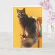 Die schwarze Katze sitzt auf einem Tisch mit Garnkegel, der Hintergrund ist orange/braun. Personalisieren Sie Ihren Gruß von "Möge Ihr Tag warm und gemütlich sein" - "Herzlichen Glückwunsch zum Geburtstag!" zu Ihrem eigenen Text.