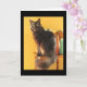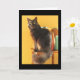 Die schwarze Katze sitzt auf einem Tisch mit Garnkegel, der Hintergrund ist orange/braun mit schwarzem Rand. Personalisieren Sie Ihren Gruß von "Möge Ihr Tag warm und gemütlich sein" - "Herzlichen Glückwunsch zum Geburtstag!" zu Ihrem eigenen Text.