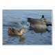 Mallards und eine kanadische Gans schwimmen zusammen.