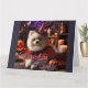 Eine Karte mit einem niedlichen Druck eines weißen Spitzes Spitz in einem Halloween-Kostüm sitzend in einem gemütlichen stimmungsvollen Raum wird Ihren Look mit festlicher Stimmung füllen! Der Hund mit der Aufschrift "Trick or Treat" verleiht dem Hund eine Touch von Spaß und Charme, die perfekt das Halloween-Ambiente unterstreicht, und ist perfekt für Liebhaber von Haustieren und diejenigen, die gewollt haben, ihrer stilvollen Karte eine festliche Stimmung hinzuzufügen.