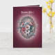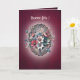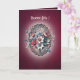 Diese elegante Festkarte ist in einem reichen Himbeer-Ton gehalten und strahlt eine warme und lebendige Präsenz aus. Auf der Vorderseite bringt ein zartes Blumenbouquet aus Rosen, sanften Blautönen und orange-rosa Nuancen einen Hauch von Frische und Poesie. Ein Lichtkranz umgibt die Illustration und erzeugt einen Eindruck von Klarheit und Sanftheit, wie ein Lichtstrahl, der jedes Blütenblatt hervorhebt.