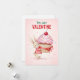 Ein niedliches Häschen in einem rot gestreiften Hemd umschlingt mit seinen Pfoten einen riesigen Cupcake mit rosa Glasur, Streuseln und einer Kirsche. Perfekt für Geburtstage, Partys oder Frühlingsthemen.