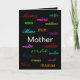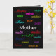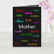 Die "Muttertagskarte" ist eine einzigartige und schöne Grußkarte für den Muttertag! Auf der Vorderseite der Karte wird das Wort Mutter in verschiedenen Sprachen geschrieben, das auf einem modernen schwarzen Hintergrund angezeigt wird. Die elegante Typografie wird mit der englischen Bedeutung des Wortes Mutter auf der Innenseite der Karte gesetzt, zusammen mit einer schönen Botschaft der Liebe fortgesetzt. Einfach personalisieren, indem Sie das Bild, die Schriftart oder die Wörter ändern, um Ihre eigene Botschaft für die Mama zu erstellen!