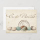 Teil eines vierteiligen Set. Vintage Collage einer Postkarte mit dem Titel "Carte Postale" und französischem Poststempel neben einer Reihe wunderschön gefärbter Vogeleier: gesprenkelt, braun und blau. Die Rückseite kommt von der Rückseite einer Vintagen französischen Postkarte.