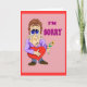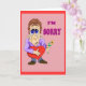 Karte für mich tut mir leid. Mann mit Karte mit Blume Sprichwort tut mir leid.