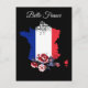 FRANKREICH und FRANZÖSISCHES THEME Design mit einem ROTEN WEISS & BLAUE Streifen KARTE OF FRANCE und einem kleinen Bouquet aus ROTEN und WEISSEN ROSE mit BLAUE BLÄTTER, die alle auf einem SCHWARZEN HINTERGRUND aussehen.