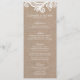 Romantische Burlap- und Spitzen-Hochzeitsmenükarten.