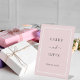 Ein hellrosa Hintergrund und ein weißer Rahmen. Text: Karten und Geschenke. Vielen Dank!