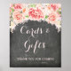 Karten und Geschenke signieren Plakat für Babydusche, Brautparty oder Hochzeit in Chalkboard-Muster mit hellrot rosa Vintagen Aquarellfarben-Blume. Ideal für eine Babydusche, Hochzeit oder ein Brautparty.