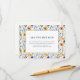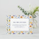 Dies ist ein Bild im Blumenstil mit einer charmanten und eleganten Karte für Hochzeitsdetails. Das zentrale weiße Paneel, umrahmt von einer lebendigen Auswahl an Blumen in Orangetönen, Gelb, Lila und Blau, strahlt Wärme und Raffinesse aus. Perfekt, um Gäste auf Ihre Hochzeitswebsite zu führen, um mehr Informationen über Unterkünfte und weitere Details zu erhalten, erfasst dieses Design die Essenz einer schönen Gartenfeier. Es inspiriert zu Gefühlen der Freude und Vorfreude und ist somit eine ideale Ergänzung für jede Hochzeitspapeterie.