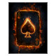 Das Bild zeigt eine Spielkarte, das Ass der Spades, umgeben von energetischen Flammen.