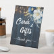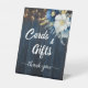 Ein elegantes Hochzeitsdesign mit eleganter Kalligrafie, ergänzt durch wunderschönes blaues Holz, grüne Saitenleuchten und weißblaue Blumen mit goldenem Glitzer. Sie können dies mit Ihren Daten personalisieren.