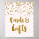 Karten und Geschenke Hochzeitsschild Poster in hellpastellfarbenen rosa und weiße Streifen Muster mit Gold Konfetti und handgeschriebenen Stil Buchstaben.