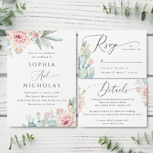 "Karten und Geschenke" Aquarell Blütenkaktus Hochzeitsposter.