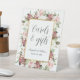 Mit diesem eleganten Hochzeitszeichen "Cards & Gifts", das mit lila rosa Blumen und einem goldenen Rahmen gestaltet wurde, können Sie Ihre Gäste mit Anmut bedienen. Ein schöner und funktioneller Akzent für Ihren Geschenktisch.