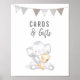Karten & Geschenkschild für Ihre Gäste für das Geschlecht offenbaren Party oder geschlechtsneutrales Party. Niedlicher und moderner Elefant, der einen bräunlichen Hund unter "Karten & Geschenke" umarmt, und obendrauf das braune und graue Fahn-Banner.