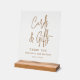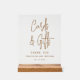Karten und Geschenke Chic Modern Wedding Event Akryllische Zeichen Features sind der Text "Karten & Geschenke Dankeschön (Ihre Namen und Datum)" in modernen Gold-Kalligraphie-Skript. Personalisieren Sie den Text durch Bearbeiten in den bereitgestellten Textfeldern. Erstellt von Evco Studio www.zazzle.com/store/evcostudio
