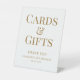Karten und Geschenke Chic Modern Wedding Event Pedestal Sign Tabletop Sign präsentiert den modernen Text "Karten und Geschenke Dankeschön (Ihre Namen und Datum)" in modernen goldenen Kalligraphie-Skript auf einem weißen Hintergrund. Personalisieren Sie den Text durch Bearbeiten in den bereitgestellten Textfeldern. Entworfen von ©Evco Studio www.zazzle.com/store/evcostudio