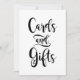 Das moderne Hochzeitszeichen "Karten und Geschenke" zeichnet sich durch ein modernes Schwarz-Weiß-Farbschema aus, mit fett gedruckter und spielerischer handgeschriebener Kalligraphie-Schrift-Typografie mit stilvollen Schriftzügen. Eine Karte in geringer Größe kann mit einem Rahmen oder einem Rahmen angezeigt werden.