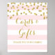 Karten und Geschenke signieren Poster für Babydusche, Brautparty oder Hochzeit in hellrot rosa und weiße Streifen Muster mit Gold Glitzer Effekt Konfetti, beachten Sie, dass Gold nur fotografische Wirkung. Ideal für eine Babydusche, Hochzeit oder ein Brautparty.