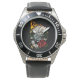Herrenuhr aus Edelstahl mit schwarzem Lederarmband