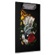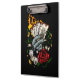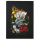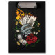 Original Vektorkunst einer Hand, die Karten hält, die in Brand sind. Mit Goldmünzen, Würfeln, 8 Ball, Ribbon und einer Rose.