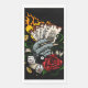 Original Vektorkunst einer Hand, die Karten hält, die in Brand sind. Mit Goldmünzen, Würfeln, 8 Ball, Ribbon und einer Rose.